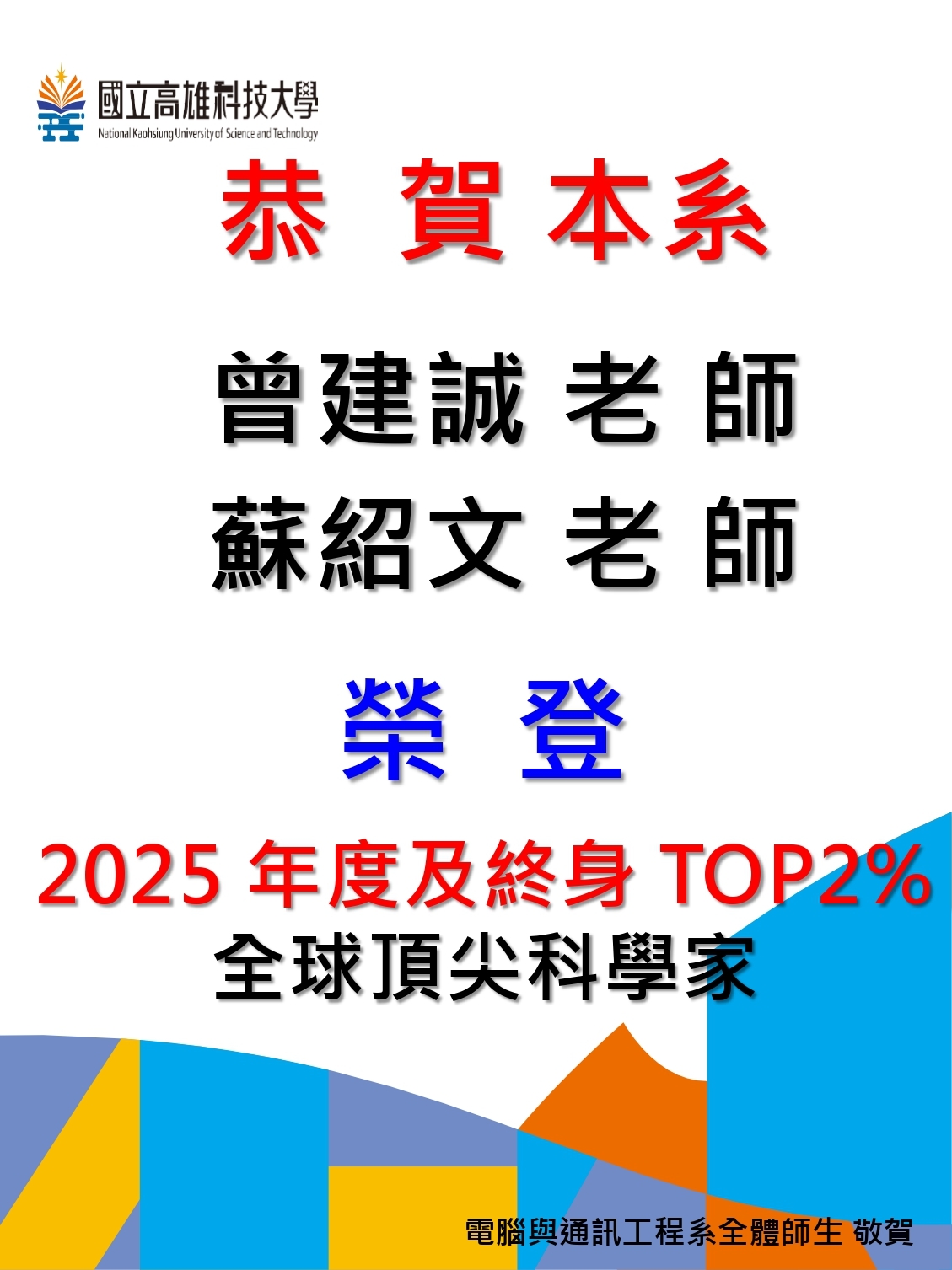 恭賀!本系曾建誠教授及蘇紹文教授榮獲2025年度及終身2%全球頂尖科學家